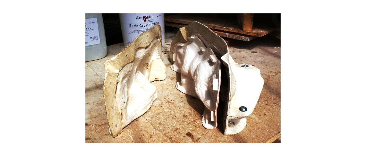 - Chape de moule en Acrystal Prima + fibre 200-4D sur silicone RTV. Tirages en Acrystal ou en silicone.